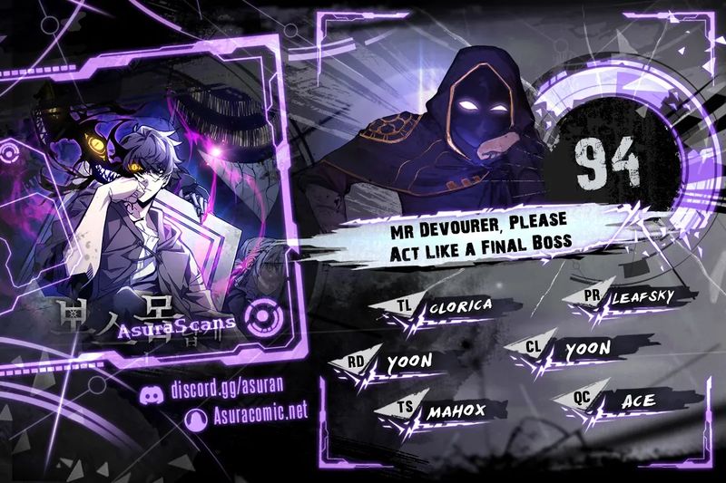 Read the latest manga Mr Devourer, Please Act Like a Final Boss Chapter 94 at mangatx.cc . Mr Devourer, Please Act Like a Final Boss is always updated at mangatx.cc . Dont forget to read the other manga updates. A list of manga collections mangatx.cc is in the Manga List menu.