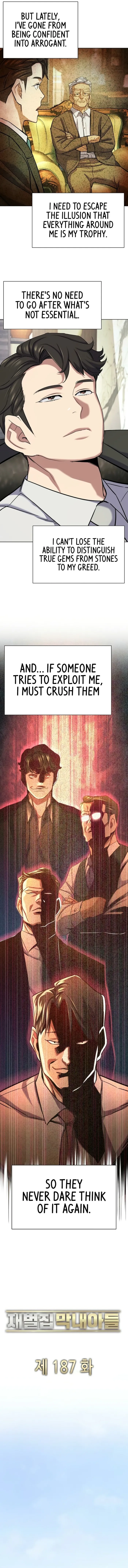 Read the latest manga The Chaebeol’s Youngest Son Chapter 187 at mangatx.cc . The Chaebeol’s Youngest Son is always updated at mangatx.cc . Dont forget to read the other manga updates. A list of manga collections mangatx.cc is in the Manga List menu.
