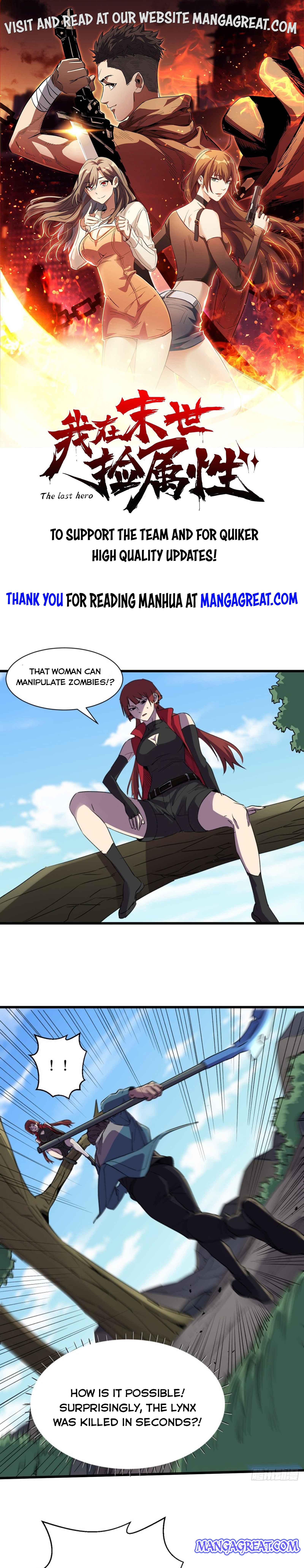 Read the latest manga The Last Hero ( I am picking up attributes and items in last days ) Chapter 81 at mangatx.cc . The Last Hero ( I am picking up attributes and items in last days ) is always updated at mangatx.cc . Dont forget to read the other manga updates. A list of manga collections mangatx.cc is in the Manga List menu.
